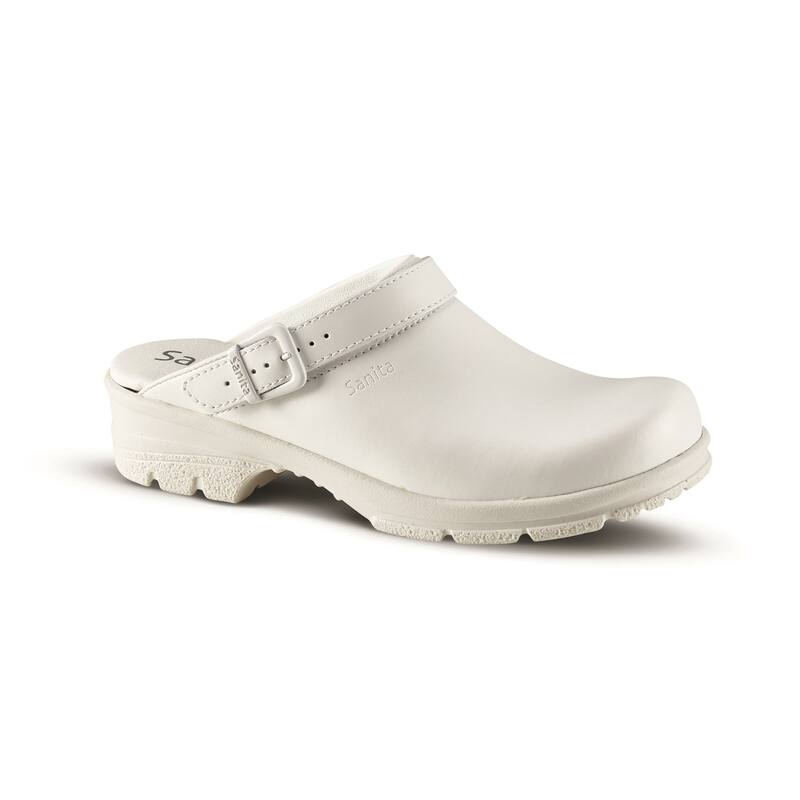 Sanita Duty klomp met een open hiel en een riempje dat ervoor zorgt dat de klomp goed aan de voet blijft zitten. De klomp is gemaakt van ademend en waterbestendig Permair Protector leer. De Grip Tech loopzool (SRC) is antislip en schokabsorberend. Het anatomische OnSteam voetbed is vochtabsorberend en antibacterieel. Sanita Duty klompen worden veel gebruikt in de horeca en voedingsindustrie en als medische klompen in ziekenhuizen, maar kunnen ook gedragen worden als fashion item. De klompen voldoen aan de volgende normeringen: EN ISO 20347 OB, antistatisch, ORO (olieresistent), E (schokabsorptie), WRU (waterbestendige kap).