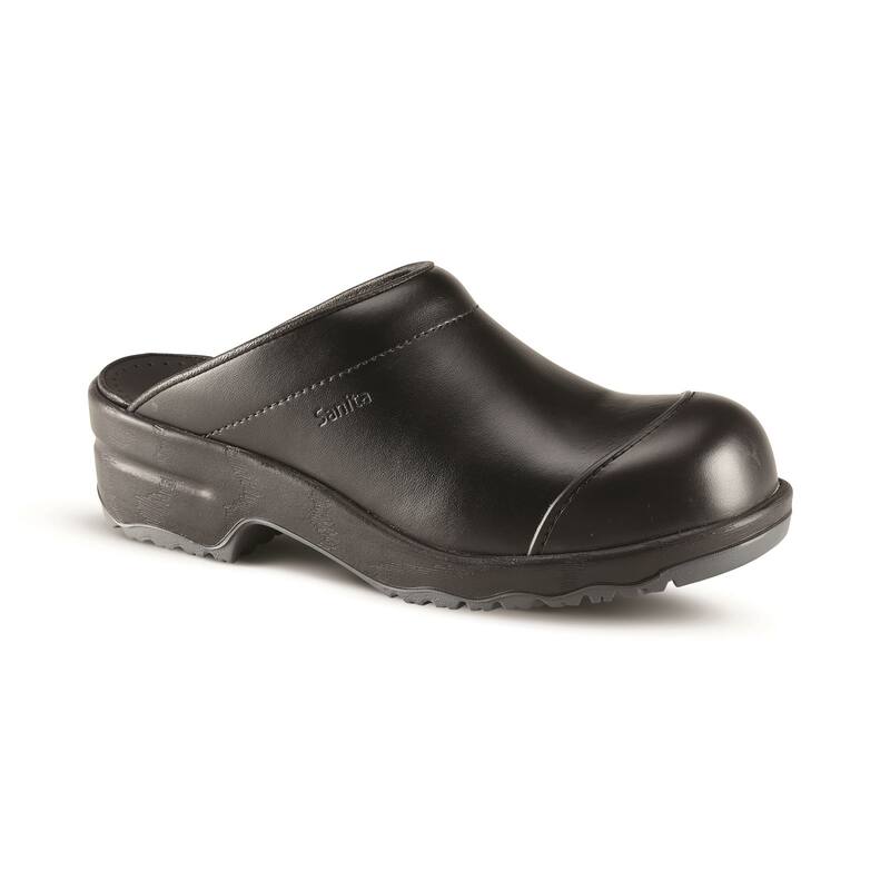 De Sanita Nitril veiligheidsklomp heeft een open hiel en is gemaakt van ademend en waterbestendig Permair Protectorleer. De klomp is voorzien van een veiligheidsneus, slijtvaste ProNose en een vochtabsorberend en antibacterieel voetbed. De PU/nitril antislipzool (SRC) met schokabsorptie zorgt voor een goede grip. De Sanita klompen worden veel gedragen in de horeca, voedingsindustrie en agrarische sector, maar zijn ook geschikt voor in huis en in de tuin. De klompen voldoen aan de volgende normeringen: EN ISO 20345 SB, antistatisch, ORO (olieresistent), E (schokabsorberend), WRU (waterresistente kap).