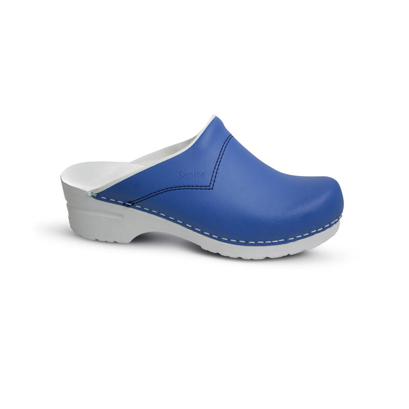 De Sanita Flex klomp is de klassieker in het Sanita-assortiment en wordt nog altijd op traditionele wijze geniet. Deze hygiënische klomp heeft een open hiel en leren kap. De leren inlegzool en de buigzame, SRC-gecertificeerde antislip loopzool zorgen voor een extra hoog comfort, juist als je tijdens je werkdag veel moet staan of lopen, bv. in het ziekenhuis, de horeca en de voedingsindustrie. Sanita klompen worden veel gebruikt als medische klomp, maar zijn door de ruime keuze aan kleuren en prints ook een ultiem fashion item. De klompen voldoet aan de volgende normeringen: EN ISO 20347 OB, E (schokabsorptie in de hiel, min. 20 Joule), FO/ORO (oliebestendig), WRU (waterresistente kap), antistatisch.