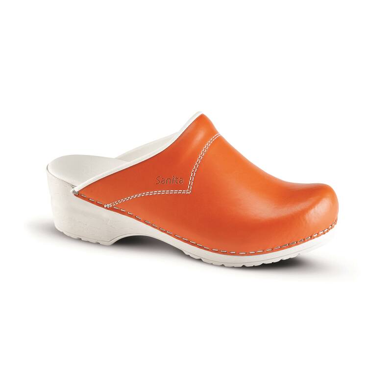 De Sanita Flex klomp is de klassieker in het Sanita-assortiment en wordt nog altijd op traditionele wijze geniet. Deze hygiënische klomp heeft een open hiel en leren kap. De leren inlegzool en de buigzame, SRC-gecertificeerde antislip loopzool zorgen voor een extra hoog comfort, juist als je tijdens je werkdag veel moet staan of lopen, bv. in het ziekenhuis, de horeca en de voedingsindustrie. Sanita Royal Pumpkin klompen worden veel gebruikt als medische klomp, maar zijn door de trendy kleur ook een ultiem fashion item. De klompen voldoet aan de volgende normeringen: EN ISO 20347 OB, E (schokabsorptie in de hiel, min. 20 Joule), FO/ORO (oliebestendig), WRU (waterresistente kap), antistatisch.
